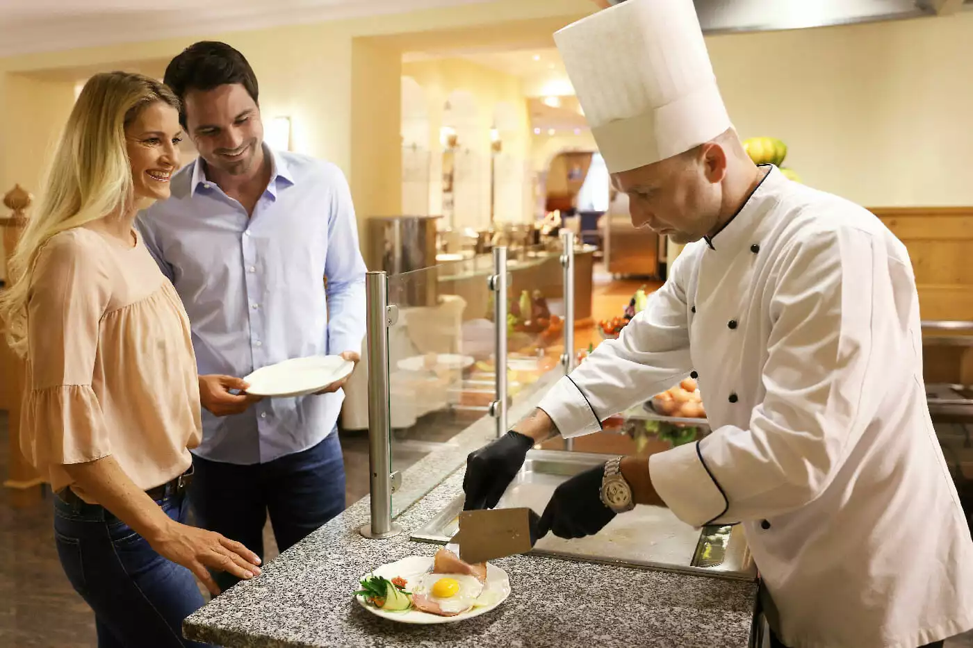 Heimische und frische Qualitätsprodukte aus dem Raum Salzburg bei einem außergewöhnlichen Frühstücksbuffet. Mit Ei-, Kaffee und Tee Spezialitäten, einer regionalen Bioecke und einem großen Sortiment von mehr als 20 Brotsorten. Lassen Sie sich von unseren Frühstücksköchen individuelle Wünsche zubereiten und starten Sie wohl gestärkt in den Tag!